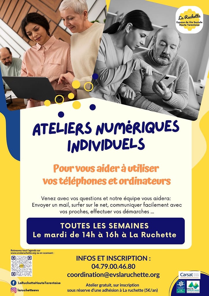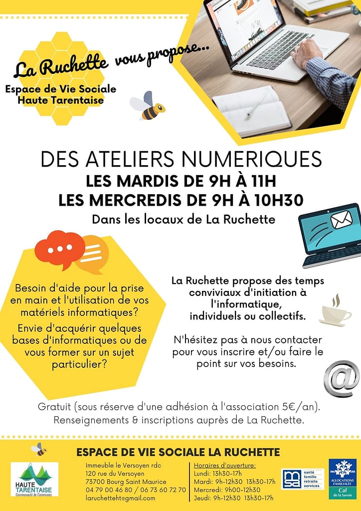Les ateliers numériques continuent à la Ruchette. Venez apprendre à vous servir de votre matériel informatique les mardis. Contactez nous pour plus de renseignements et pour réserver votre créneau.